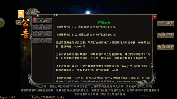 冰雪传奇点卡版开区通知|S122.慧眼如炬2024年9月23日19:00开服发表时间:2024-09-23 14:02 冰雪传奇点卡版【开区通知】S122.慧眼如炬2024年9月23日19:00开服