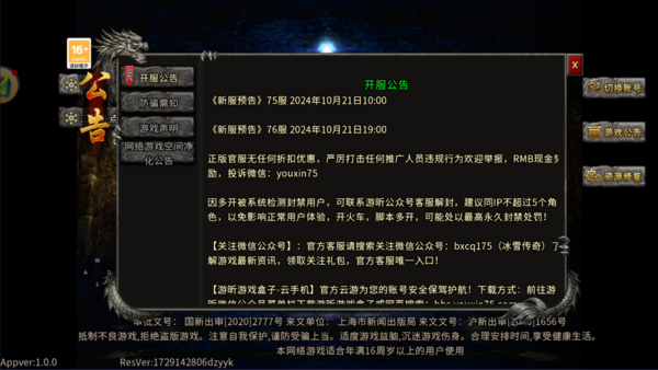冰雪传奇点卡版单职业|10月21日开区通知发表时间:2024-10-21 10:43 冰雪传奇点卡版单职业【开区通知】 75服.2024年10月21日10:00 76服.2024年10月21日19:00